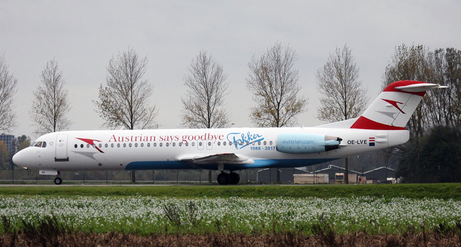 Austrian Airlines. Carries special "Austrian says goodbye Fokker
