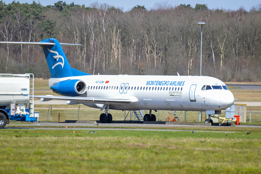 Montenegro Airlines F100 4O-AOM (11321) arrived at Fokker Services for