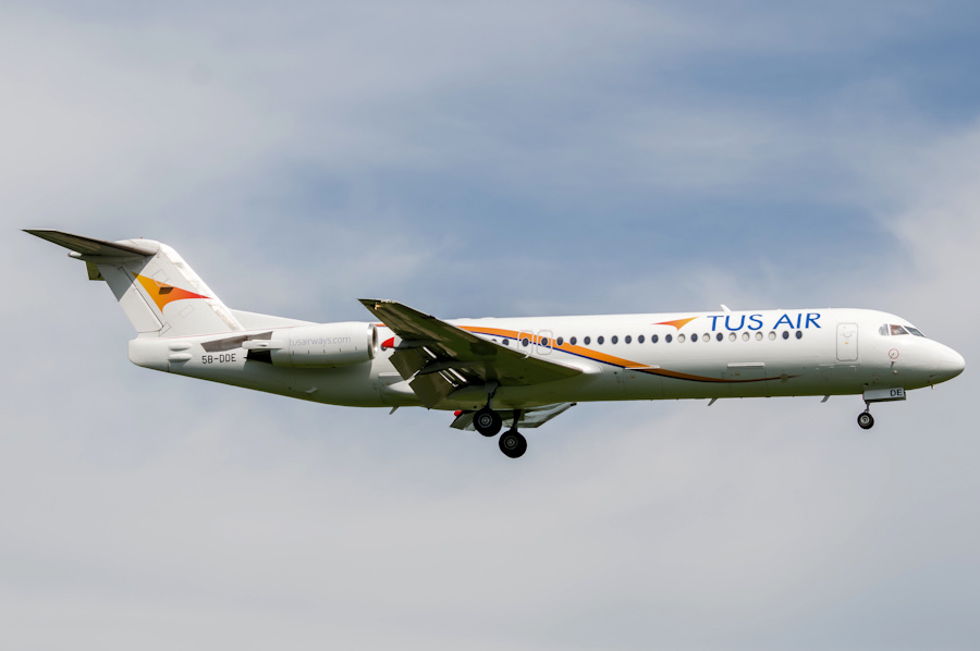 TUS Airways sent F100 5B-DDE (11427) from Cyprus to Fokker Services in the