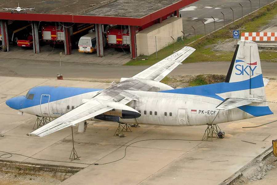 Sky Aviation. After its retirement, this F50 was stored at Pekanbaru