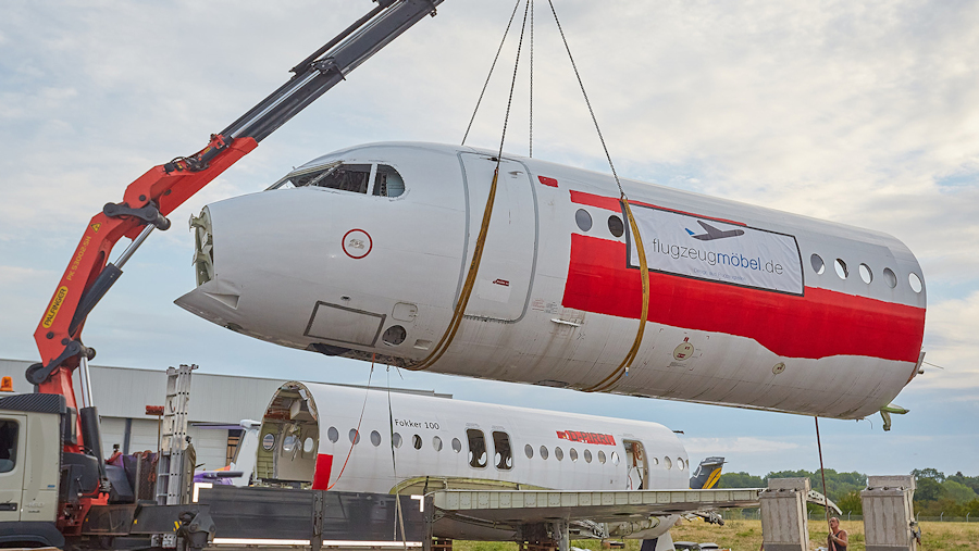 in two and transported to the premises of Fleugzeugmebel.de at Marpingen,