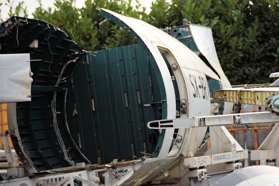 The aft fuselage of Minoan Air SX-BRV (20199) is stored at the dump at