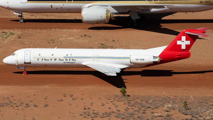 and VH-VKQ (11501, ex HB-JVC). (Mitch Coad, Alice Springs, 2 October 2020)