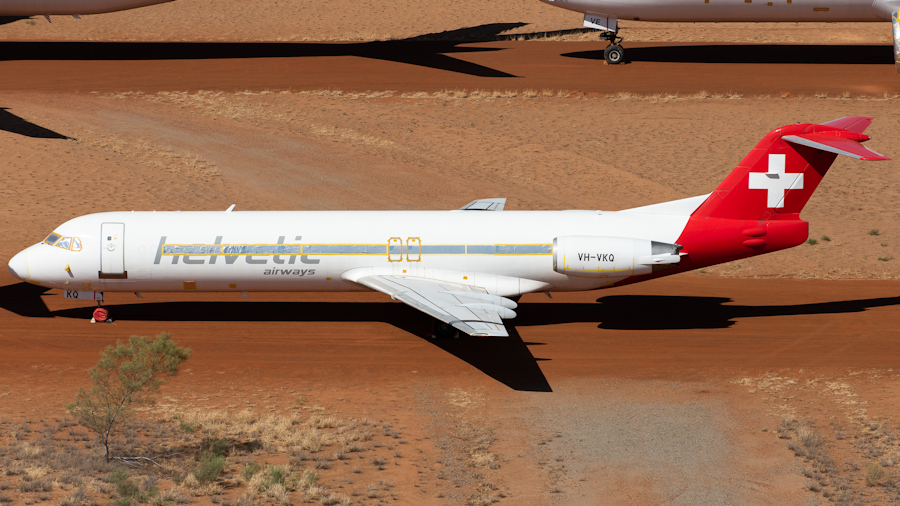 still in the livery of their former operator Helvetic, VH-VKN (11459, ex HB-JVE)