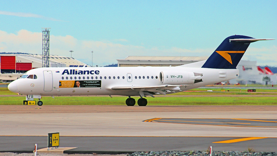 Alliance Airlines. This F70 is carrying large 'Reds official airline