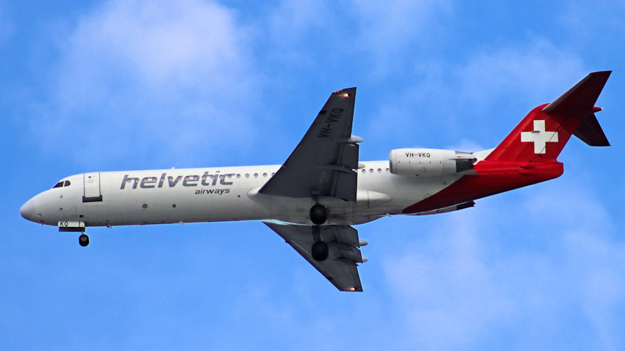 Brisbane, still in full Helvetic Airways livery. It is believed that this