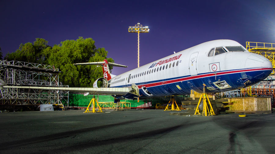 The hull of Air Panama F100 HP-1894PST (11390) is stored in Mexico City