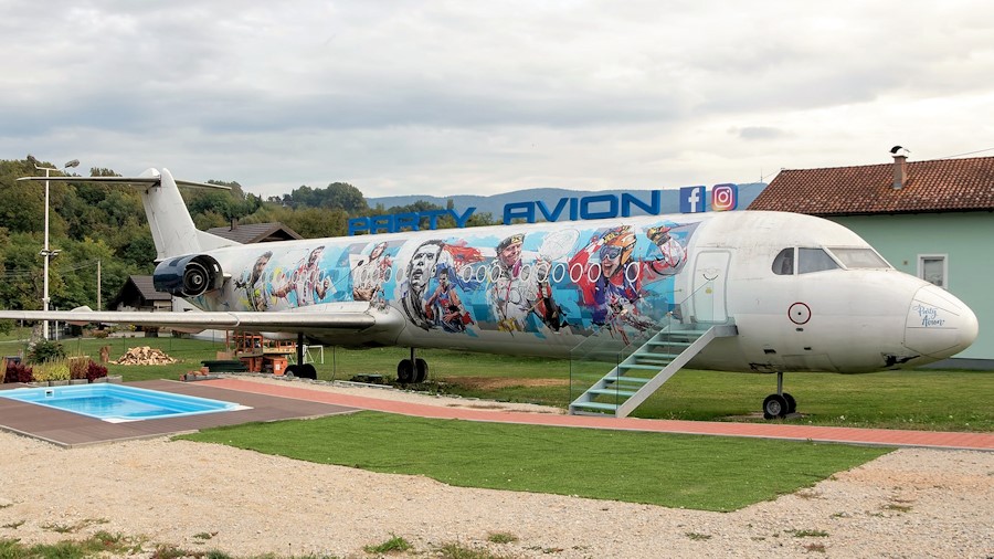 large "Party Avion" billboard on top of the aircraft. (Charles Cunliffe on