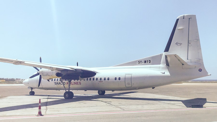 Saacid Airlines. Noted on 4 February 2022 at Barawe airport, Somalia,