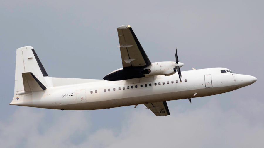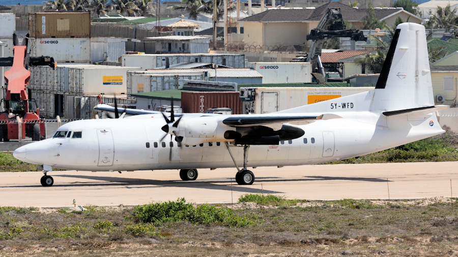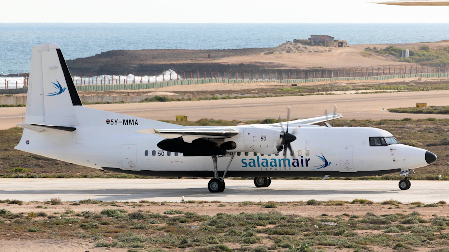 with a Fokker 50, leased from Mid Africa Aviation (Sharjah, UAE). The