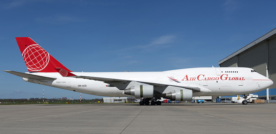 747-409F met registratie OM-ACG heeft nu een wereldbol in de staart in plaats