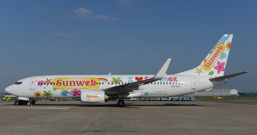 van Transavia, meteen weer voorzien van het (ongewijzigde) SunWeb kleurenschema