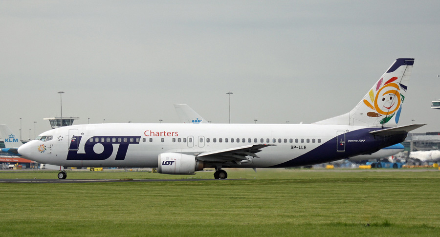 LOT stuurde voor de verandering eens een keer een Boeing 737-45D SP-LLE van LOT