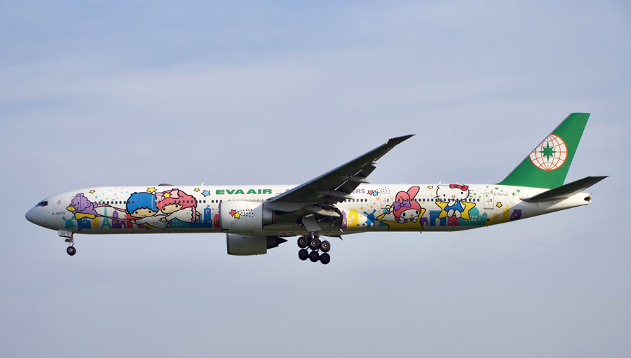Boeing 777-36N(ER) B-16722 in Hello Kitty kleuren. (Michel Nederstigt, 16 april