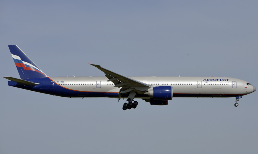 Boeing 777-3M0(ER) VQ-BQE Aeroflot. (Adriaan Elligens, 10 april 2020)