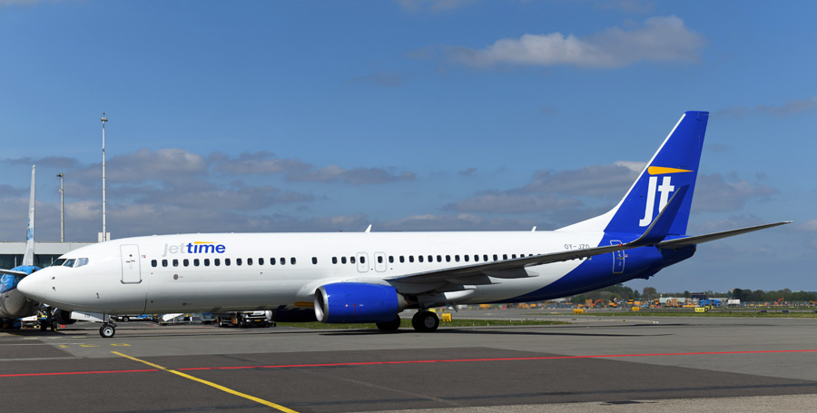 Jettime kwam op 28 april met de Boeing 737-8U3 OY-JZO Transavia te hulp. (Ton