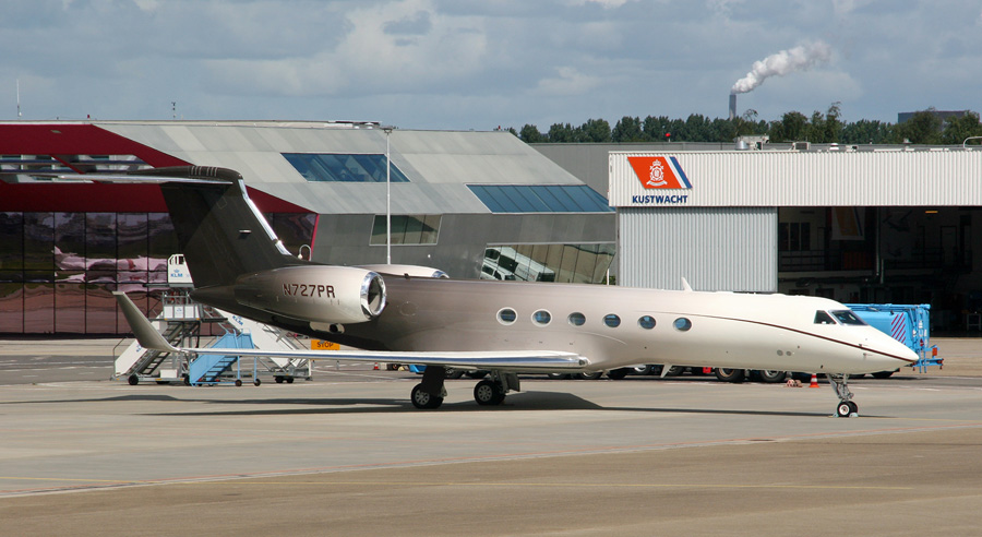 Gulfstream V in een attractief kleurenschema is de N727PR. (Ad-Jan Altevogt, 10