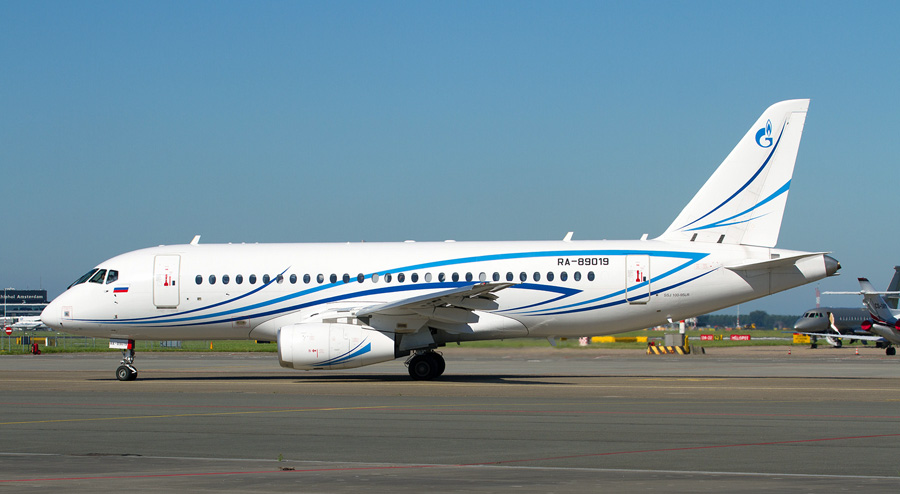 RA-89019, een Sukhoi Superjet 100-95LR van Gazpromavia.