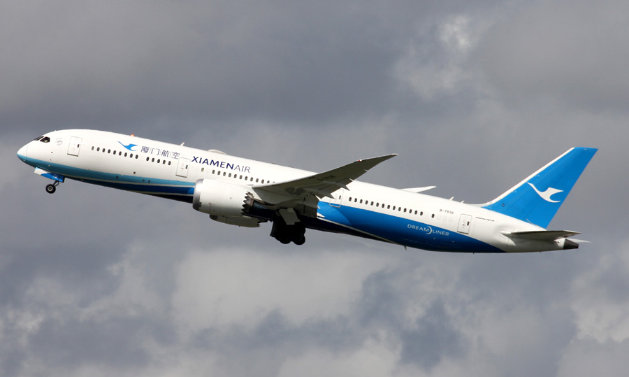 Xiamen Airlines stuurde ��n keer een Boeing 787-900 Dreamliner, de B-7838, op de