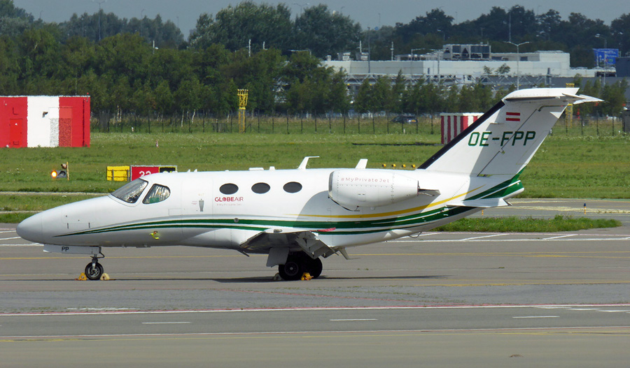 Cessna 510 Citation Mustang OE-FPP GlobeAir. (Ad Jan Altevogt, 14 augustus 2021)
