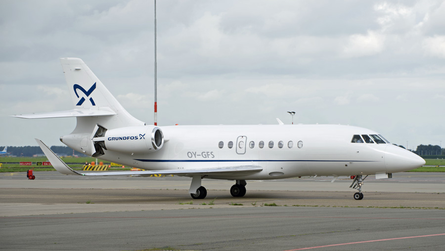 Dassault Falcon 2000LX OY-GFS van Air Alsie vliegt voor Grundfos, �s werelds