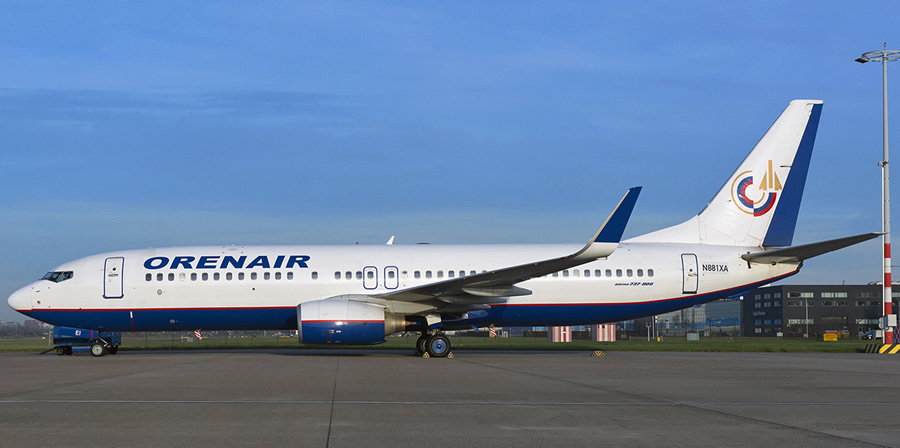 VP-BEI en PH-CDG in zijn Orenair kleuren op Schiphol-Oost te zien. (Peter van