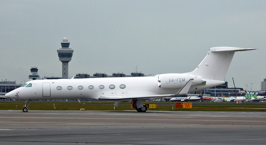 Gulfsream GV-SP G550 deze maand, waarvan eigenlijk alleen de registratie XA-FEM