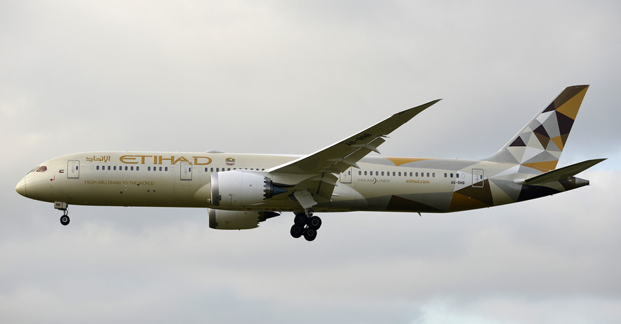 Boeing 787-9 Dreamliner A6-BNB van Etihad. (Adriaan Elligens, 3 december 2019)