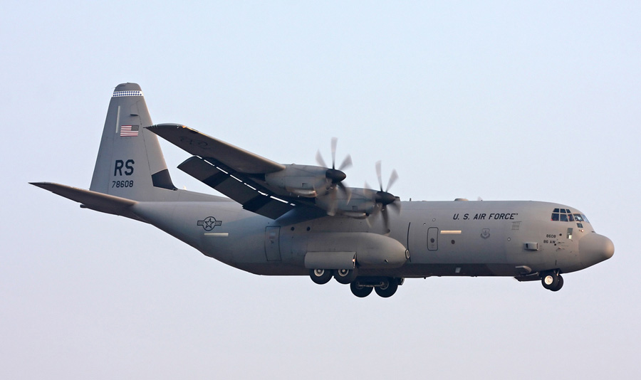 door Hercules C-130J-30 07-8608/RS, afkomstig van Ramstein. (Koos Heemskerk, 16