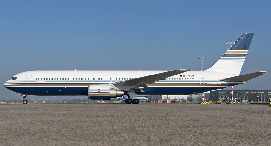 Gelukkig komt hun Boeing B767-35D, de EC-LZO, zo nu en dan ook deze kant op.