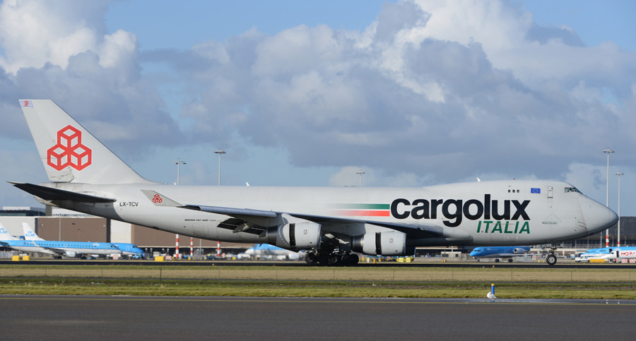 de Boeing 747-4R7F�s van het Luxemburgse Cargolux, de LX-TCV, is voorzien van