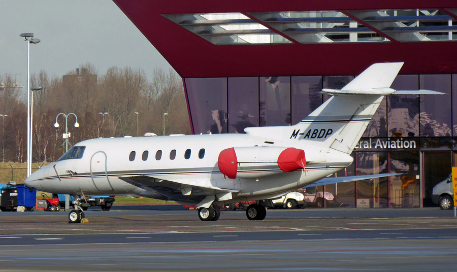 dag stond ook de M-ABDP, een Hawker 800 XP van Kitlan Ltd. op Schiphol-Oost.