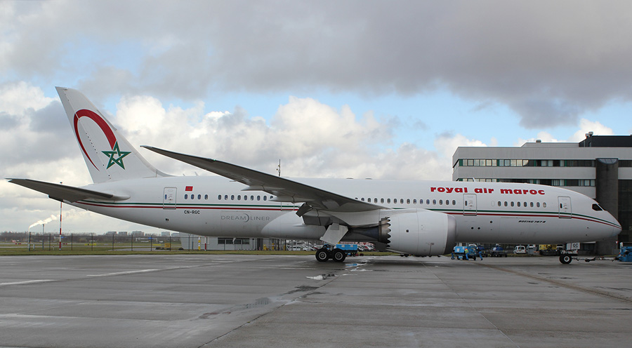 Royal Air Maroc stuurde de CN-RGC, een Boeing 787-8 Dreamliner, naar KLM