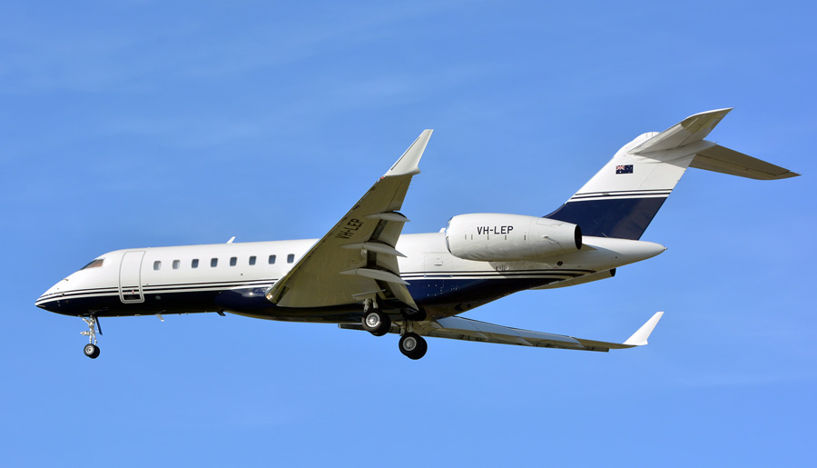 Ver van huis was de Bombardier BD-700 Global 5000 VH-LEP van Linfox Global