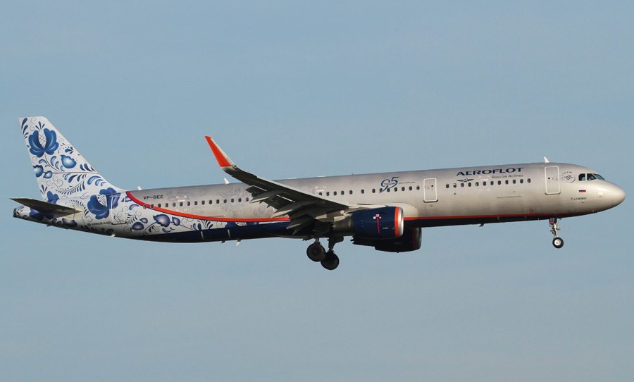Een andere special paint van Aeroflot is de VP-BEE, een Airbus A321-211, ter