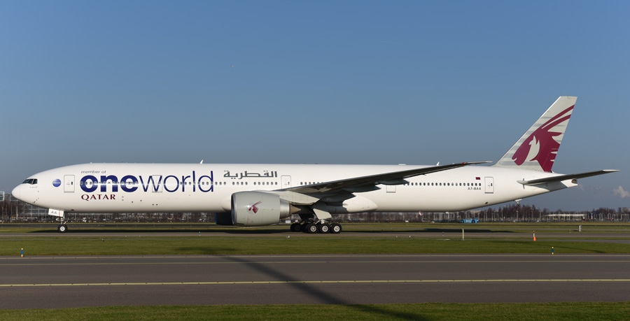 Qatar Airways is onderdeel van de Oneworld Group. De Boeing 777-3DZ A7-BAA is