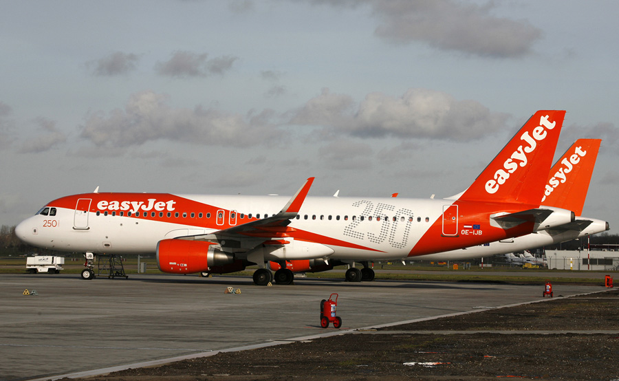 250e easyJet Airbus A320-214 is een bekende verschijning op Schiphol. Nieuw is