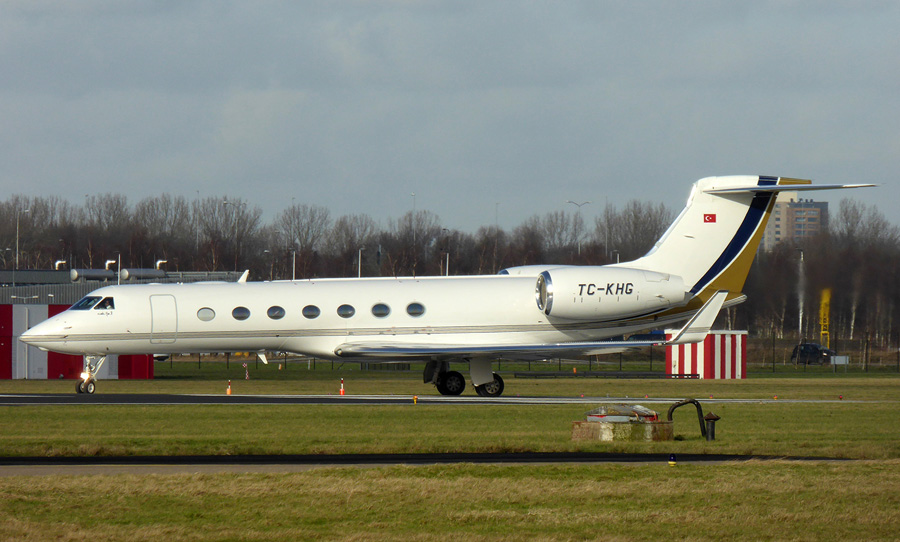 TC-KHG is een Gulfstream G550. (Ad-Jan Altevogt, 30 januari 2018)
