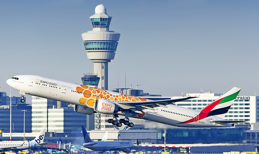 Airlines in de blauwe Expo 2020 kleuren. (Robert Eikelenboom, 9 januari 2019)