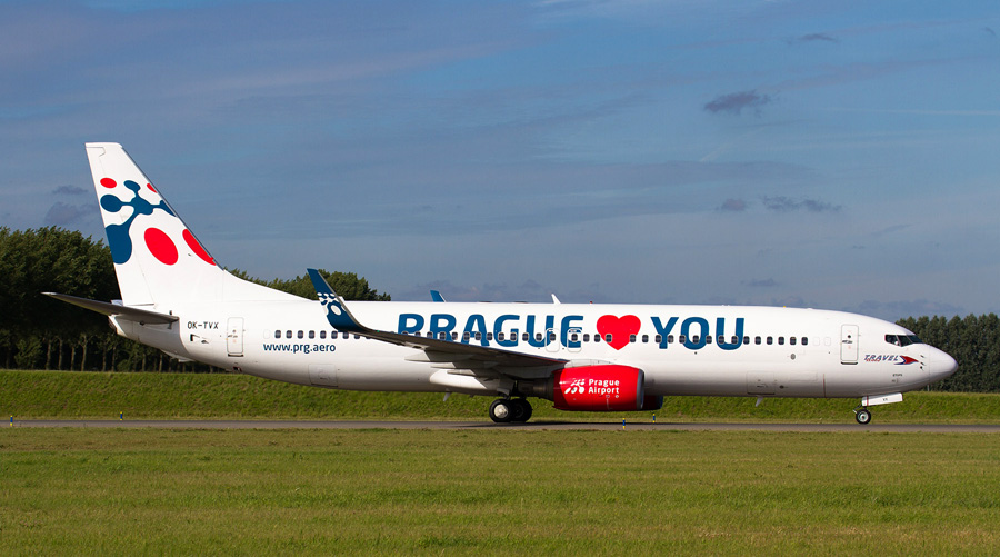 Ook welkom was Travel Service met de OK-TVX, een Boeing 737-8Z9 in de �Prague
