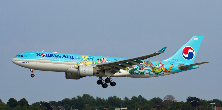 Korean Airlines Airbus A330-223, de HL8211, is voorzien van het zogenaamde