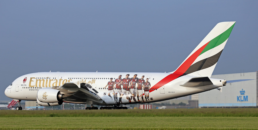 Emirates Airlines is de sponser van AC Milan. Om dit wat extra aandacht te