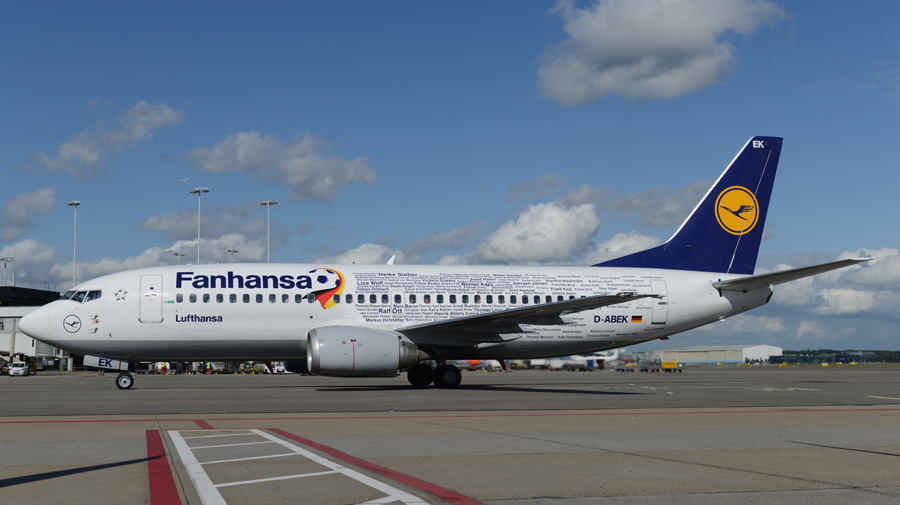Ook Lufthansa had een Boeing 737-330 voorzien van speciale UEFA Euro 2016