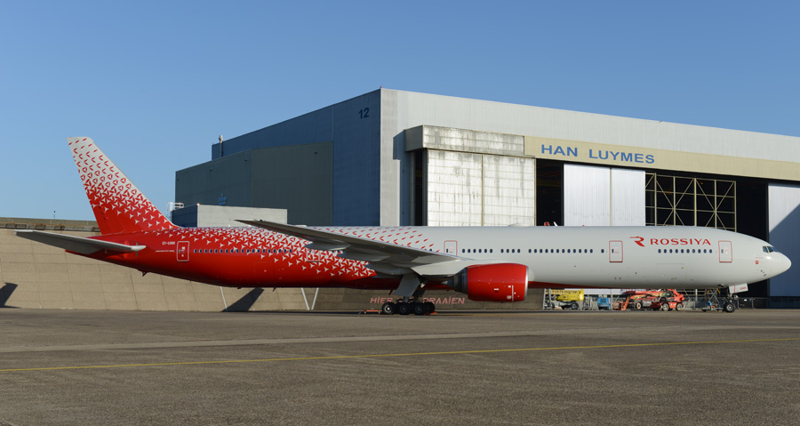 Vorige maand stond de EI-UNN, een Boeing 777-312 afkomstig van Transaero, ook al