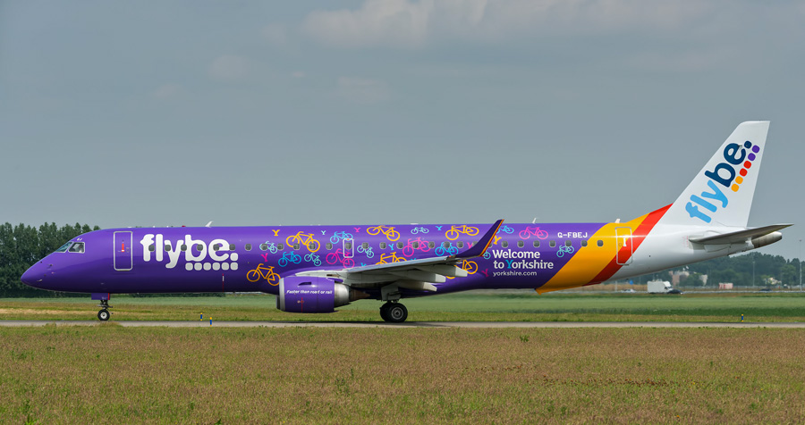 Flybe heeft een tweetal Embraers 195LR�s in een speciaal kleurenschema