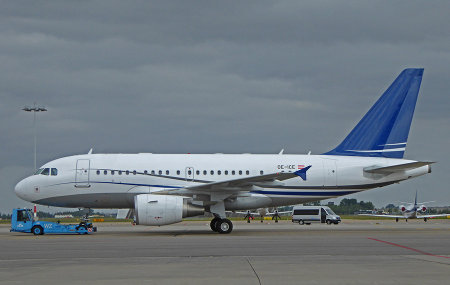 Een leuke corporate jet op Schiphol-Oost was de OE-ICE, een Airbus A318-112CJ