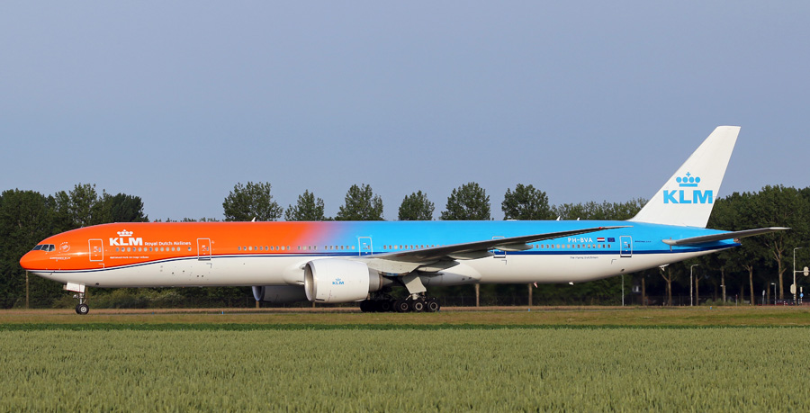 KLM. De Boeing 777-306 PH-BVA is in verband met de Olympische spelen in Rio de