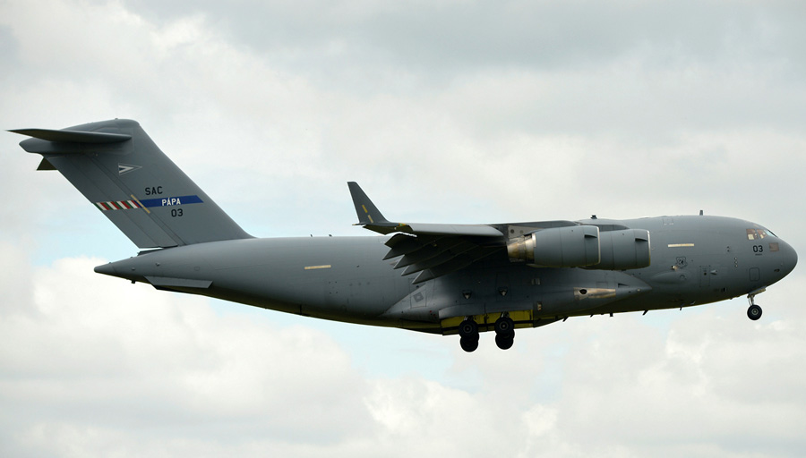Boeing C-17A Globemaster III 08-0003 van de NATO/Hungarian Air Force was een