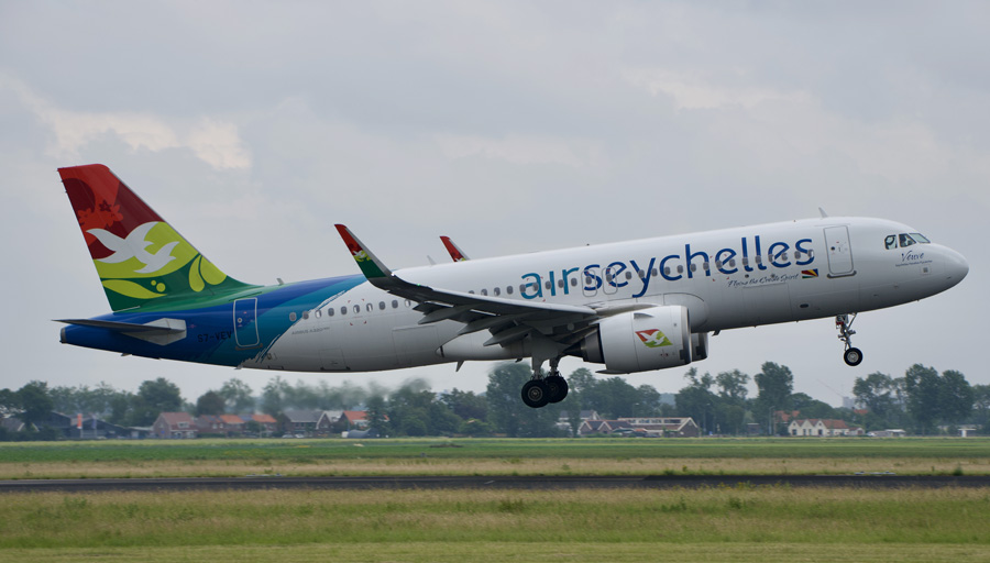Een welkome visitor was de Airbus 320-251N S7-VEV van Air Seychelles. (Michel