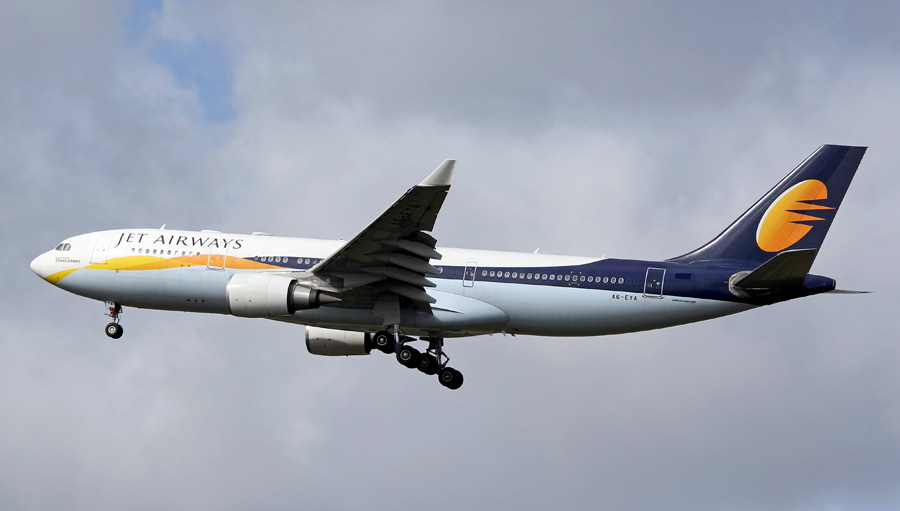 draagt nog de kleuren van de lease aan het Indiase Jet Airways, waar deze